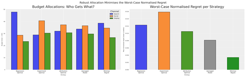 BudgetOptimizer. - Present to stakeholders. Show the regret matrix and the comparison plot. The pitch: “This allocation leaves the least value on the table no matter which model turns out to be correct.”