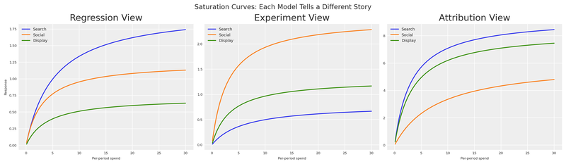 We always have an assumption around our system, which should be share by the measurement tool used to estimate it. If we believe attribution is the real source of truth, and our system suffers from diminishing returns, then we should be able to observe the saturation curve in the attribution data. Same with an experiment, we should be able to observe the saturation curve in the experiment data, after we collect the data.